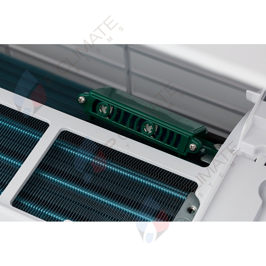 Кондиционер оснащен генератором ионов Cold Plasma, который эффективно очищает воздух, уничтожая бактерии, вирусы, пыльцу и другие аллергены. Заряженные частицы кислорода и водорода вступают в реакцию с вредными микроорганизмами, окисляя и разрушая их, что обеспечивает чистый и свежий воздух в помещении.