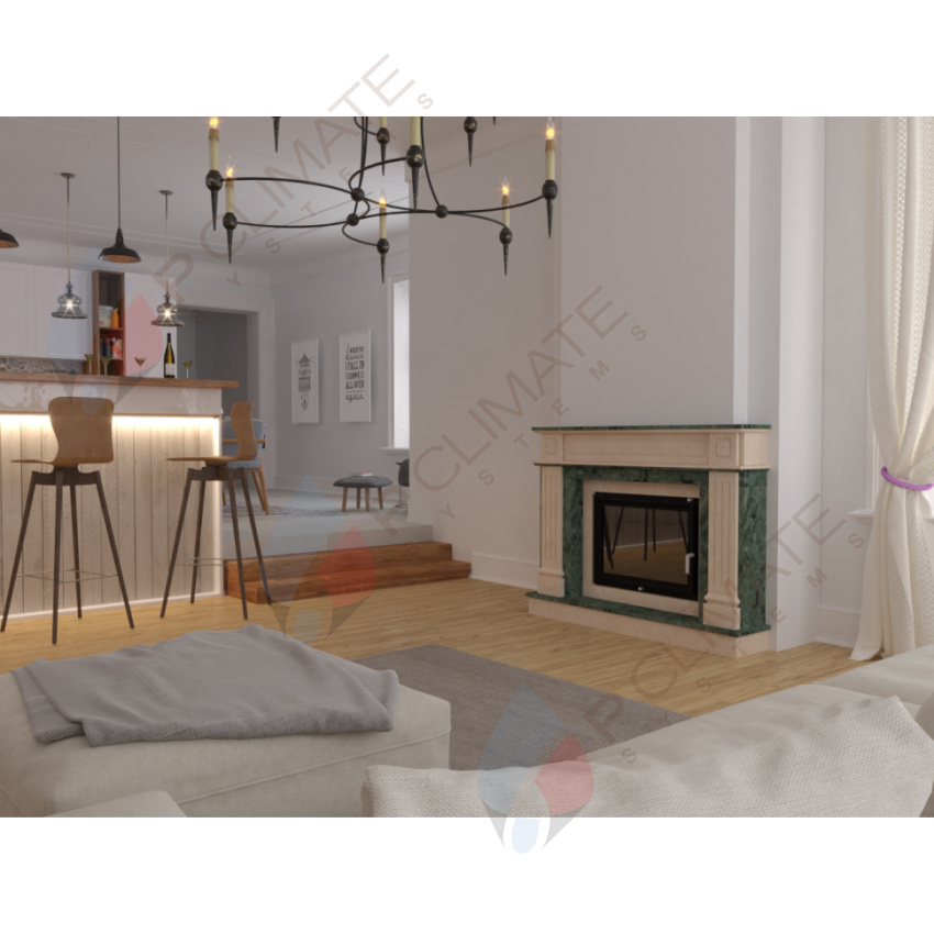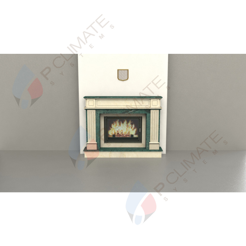 Отделка Botticino/Verde Guatemala выполнена из натурального камня, что придает камину элегантность и уникальность. Этот вид отделки имеет светлый оттенок с мраморным рисунком, который добавляет шарм и стиль вашему интерьеру.