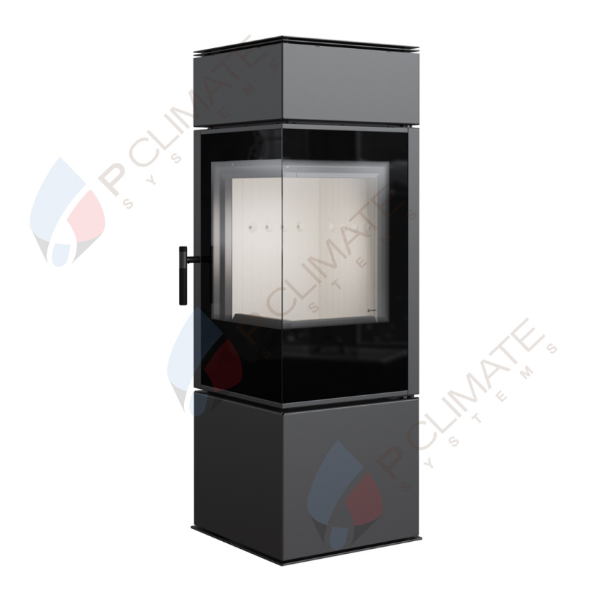 Камера сгорания печи THOR 8 установлена в стальной кожух темно-серого цвета. Она оснащена Г-образной дверцей с двумя термостойкими стеклами, что обеспечивает хороший обзор огня и создает эффектный визуальный акцент.