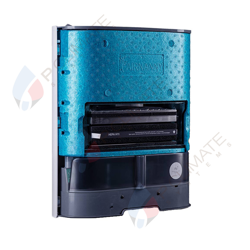 AIRNANNY A7 Start — это комплектация приточного очистителя воздуха от ATMEEX с тонкой очисткой воздуха и встроенным увлажнителем.