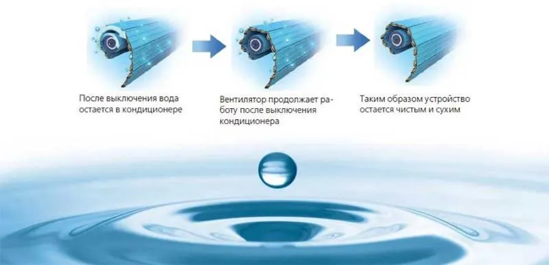 Для обеспечения отвода влаги у кондиционеров с длинными и сложными трассами устанавливают помпу, которую принудительно откачивает влагу из поддона комнатного блока. При поломке насоса вода накапливается в ванночке и, переливаясь через край, стекает в комнату. Устранить проблему можно, только заменой дренажного насоса.